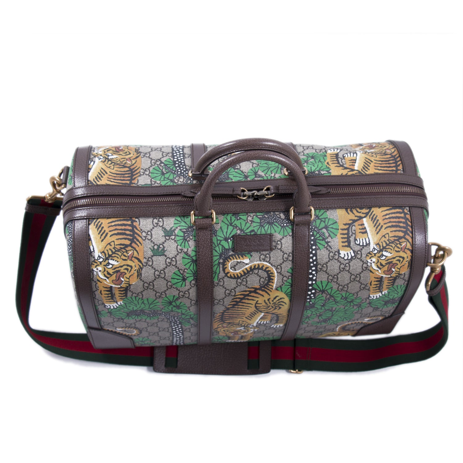 Description: Authentic New Gucci Bengal GG Supreme Weekender Duffle Bag