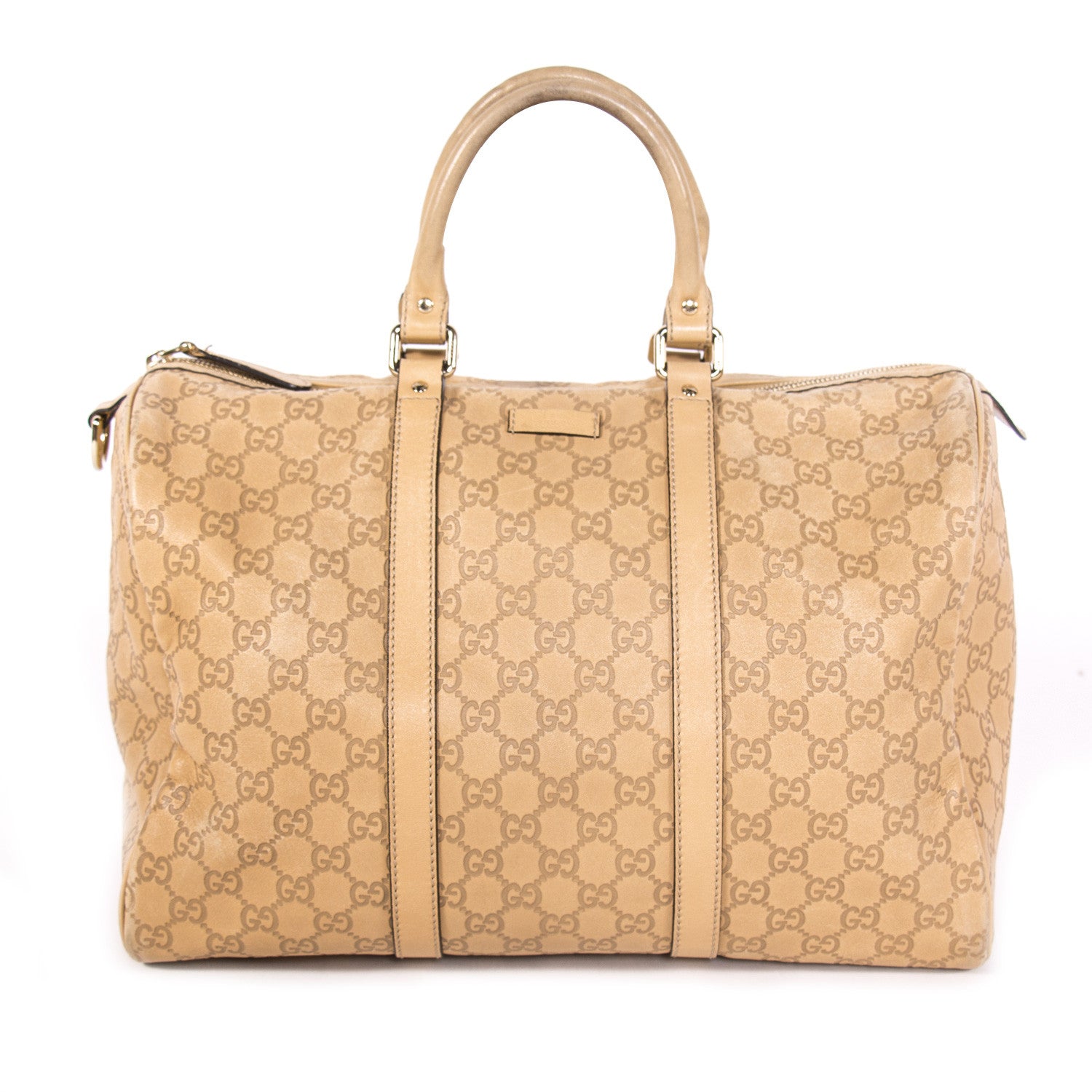 Details: Tan Guccissima Leather / Golden Brass Hardware / Embossed GG Initials Throughout The Leather / Dual Rolled Handles / Zip Closure On Top / Multicolor Interior Textile Lining / Single Pocket At Interior Wall