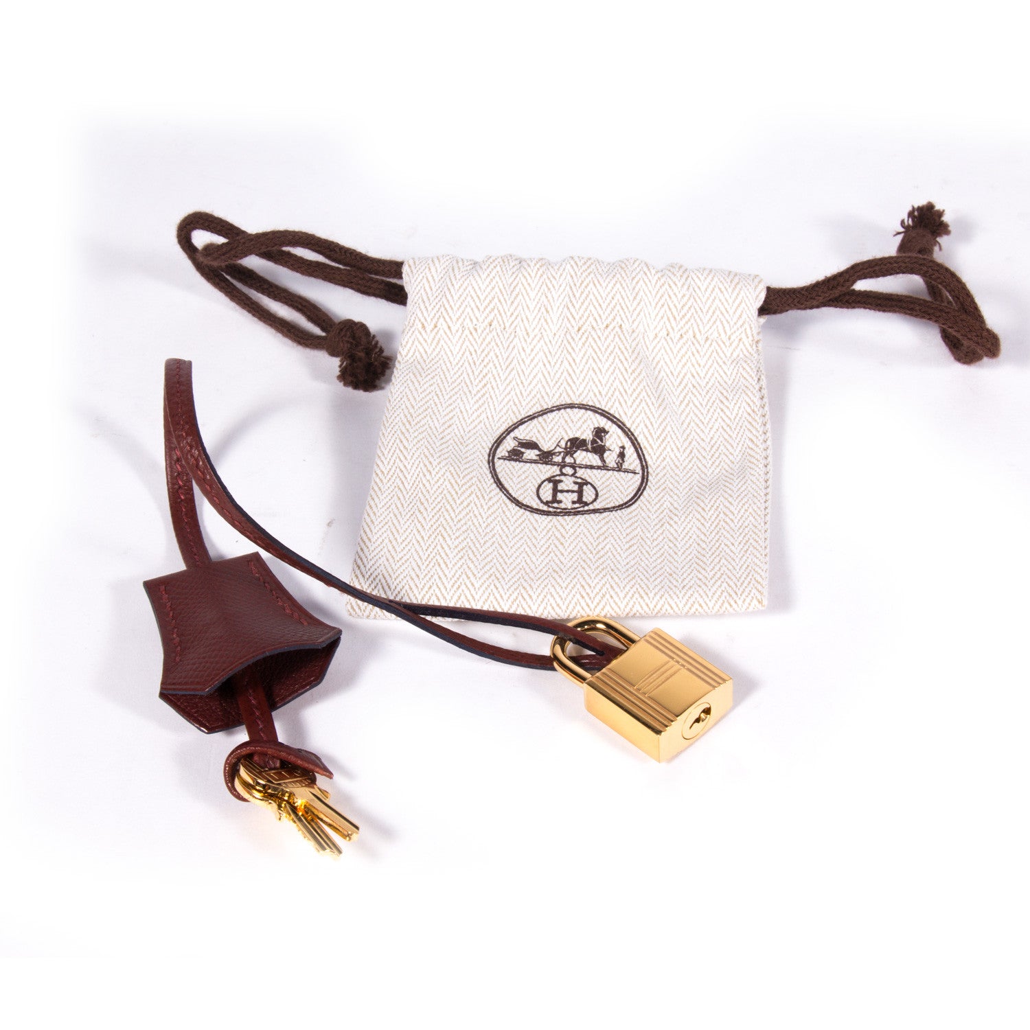 Details: Burgundy Epsom Leather / Gold Tone Hardware / Dual Top Rolled Handles / Burgundy Tonal Leather Lining / Single Large Compartment / Dual Pockets At Interior: Zip Pocket And Slit Pocket / Turn Lock Closure At Front