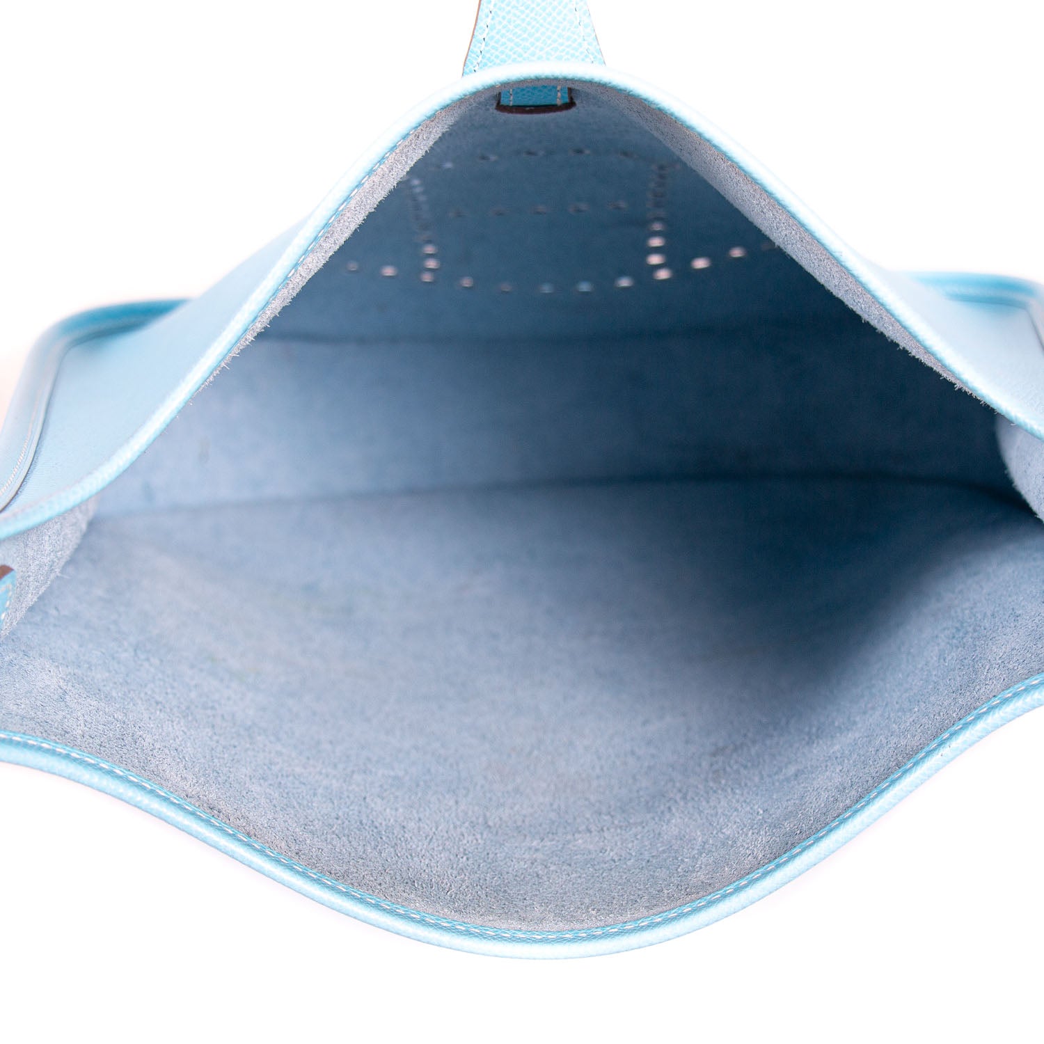 Details: Sky Blue Epsom Leather / Palladium Hardware / Detachable and Adjustable Shoulder Strap / Exterior Pocket at Back / Perforated H Logo at Front / Suede Interior Lining / One Compartment / Push Lock Closure