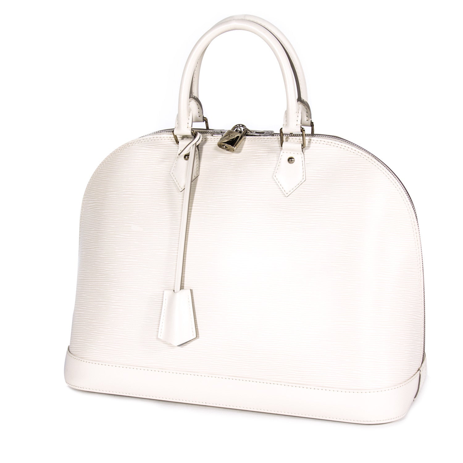 Description: Authentic White Louis Vuitton Alma GM Handbag