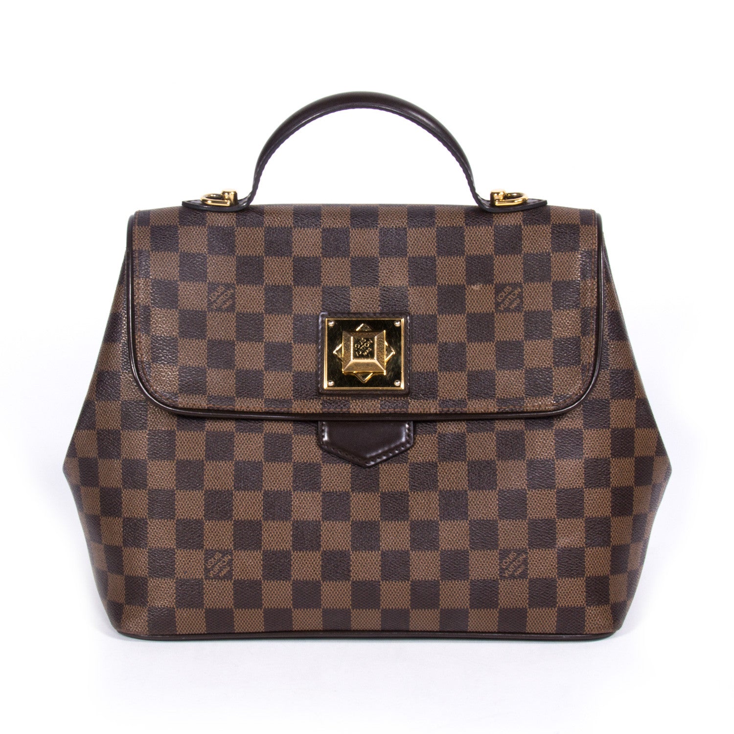 Details: Brown And Tan Damier Ebene Coated Canvas / Brass Hardware / Vachetta Brown leather Trim / Removable Shoulder Strap /  Flat Top Handle / Red Alcantara Interior Lining / Dual Slit Pockets At Interior Wall / Gold Front Twist Turn-Lock Closure At Front Flap