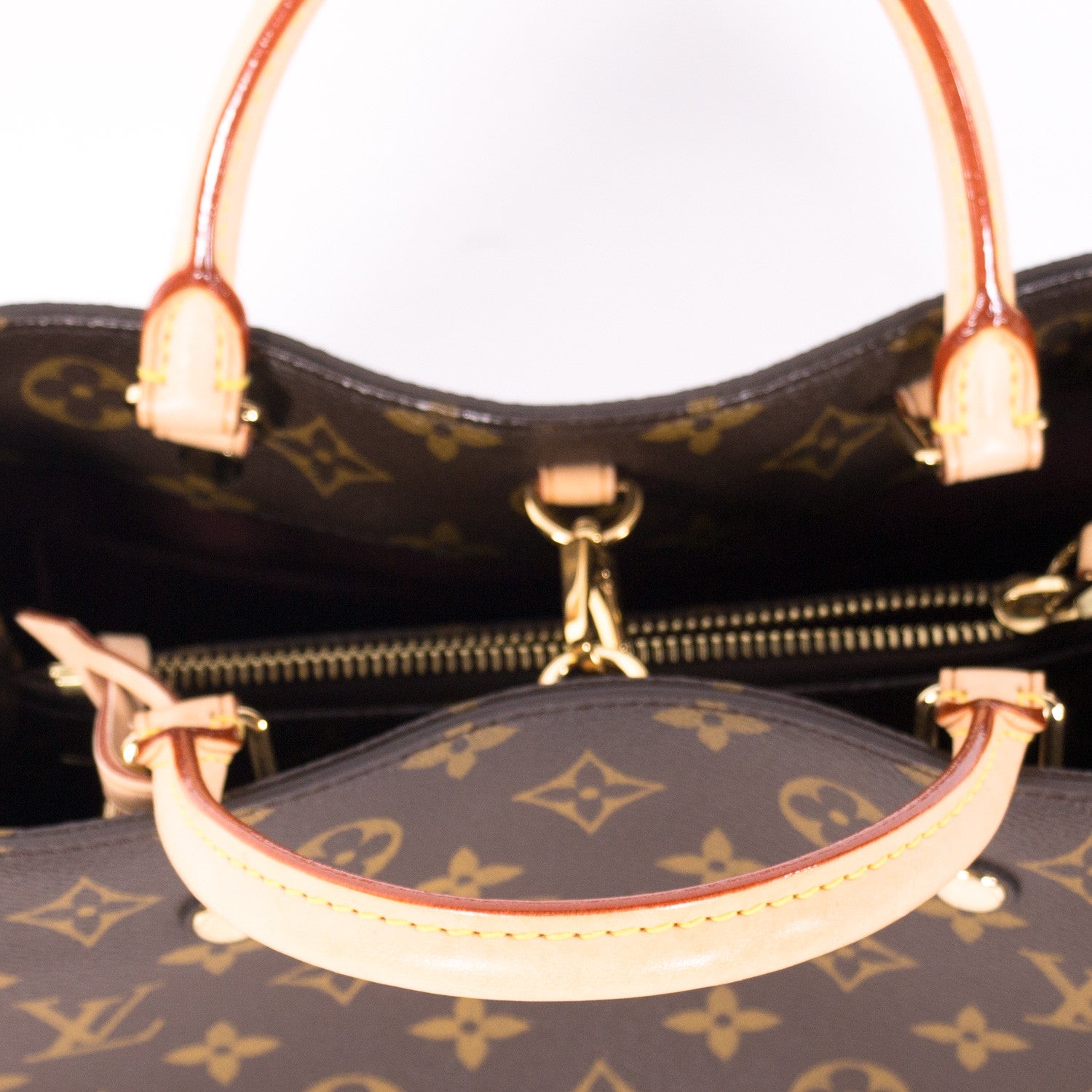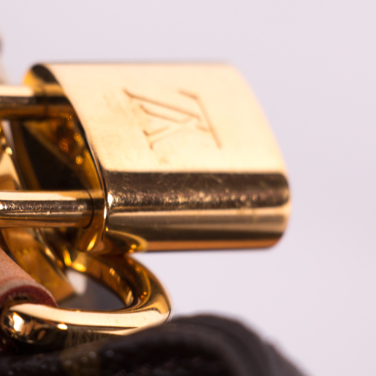 Details: Brown And Tan Monogram Coated Canvas / Natural Cowhide Tan Vachetta Leather Trim / Golden Brass Hardware / Dual Rolled Handles / Detachable Shoulder Strap / Burgundy Alcantara Interior Lining / One Central Zippered Compartment With Padlock / Dual Wide Compartments / One Double BB Pocket / Single Flat Pocket / Protective Studs At Base