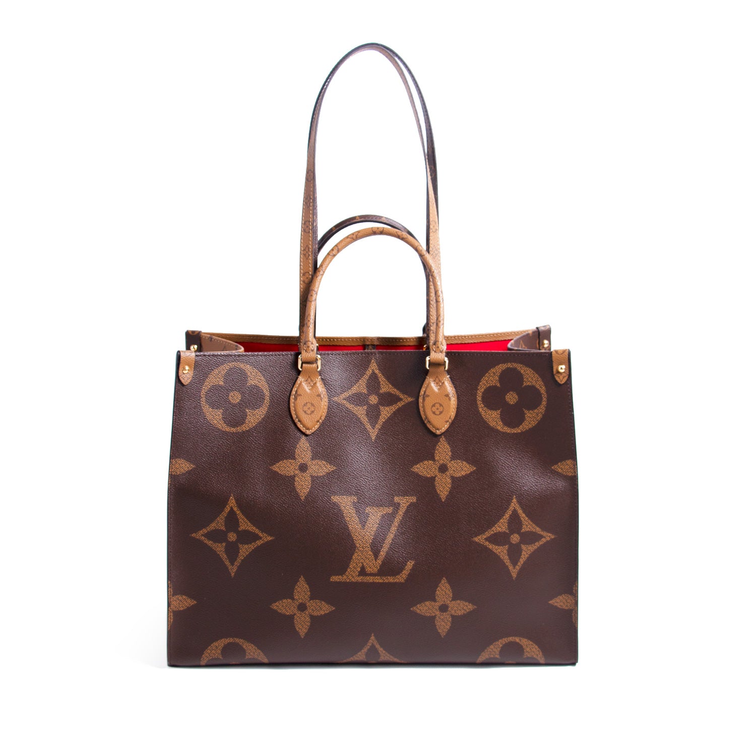 Details: Brown Monogram, Monogram Inverse and Monogram Oversized Coated Canvas / Gold-Tone Hardware / Dual Rolled Handles and Shoulder Straps / Red Fabric Coated Canvas / Dual Flat Pocket and One Zipper Pocket at Inside / Lobster Lock at Top