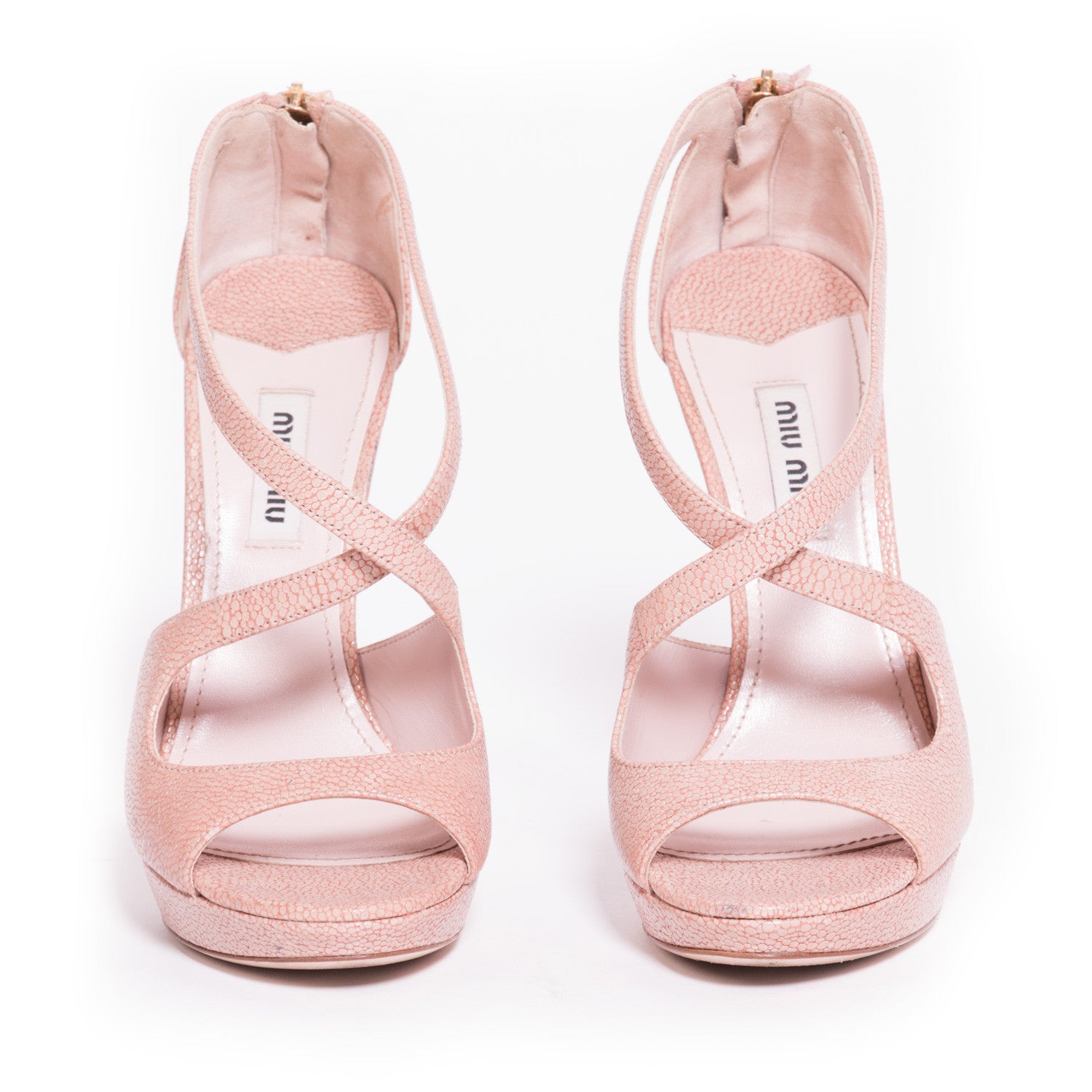 Details: Nude Color Leather / Sandals Platforms / Cross Over Straps At Front / Tonal Stitching Throughout / Cover Heels At Counter / Gold Tone Zip Closure At Counter