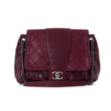 Details: Red Caviar and Distressed Calfskin Leather / Silver Tone Hardware / Chain-Link Shoulder Strap with Leather Pad / Exterior Pocket at Back / Single Compartment with Zipper and Flat Pocket / Fabric Interior Lining / Turn-Lock Closure at Front Flap