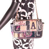 Details: Multicolor Denim, Leather, Raffia, Tweed, Fabric, Patchwork, and Others / Silver-Tone Hardware / Chain-Link and Brown Leather Shoulder Strap / Blue Denim Fabric Lining at Interior / Single Compartment with Zipper and Flat Pocket / Turn-Lock Closure at Front Flap