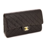 Details: Black Quilted Lambskin Leather / Gold Tone Hardware / Dual Shoulder Straps Featuring Chain-Links / Exterior Flat Pocket At Back / Black Leather Interior Lining / Dual Pockets At Interior Walls, One With Zip Closure / Zip Closure At Inside / Interlocking CC Turn-Lock Flap Closure