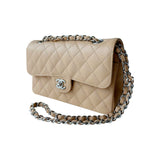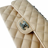Description: Authentic New Chanel Classic Small Double Flap in Neutral Grained Calfskin Leather