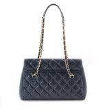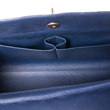 Details: Navy Blue Lambskin Leather / Gold Tone Hardware / Two Separate Chain-Link Shoulder Straps With Leather Pads / Blue Leather Interior Lining / Single Zip Pocket and Dual Flat Pocket at Interior / Turn-Lock Closure at Front Flap