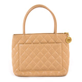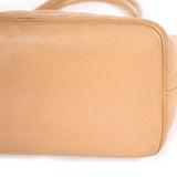 Details: Tan Quilted Caviar Leather / Gold Tone Hardware / Dual Rolled Handles / Exterior Flat Pocket At Back / Tonal Stitched CC Logo Embellishment At Front / Tonal Leather Interior Lining / Dual Pockets At Interior, One With Zip Closure / Zip Closure At Top