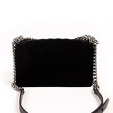 Description: Black Quilted Velvet / Silver Hardware / Chain-Link and Leather Shoulder Strap / Single Compartment / Black Fabric Lining / Single Slit Pocket at Inside / S-Lock Closure at Front Flap