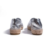Details: Silver Metallic Leather / CC Logo at Vamps / Jute Trims / Rubber Sole