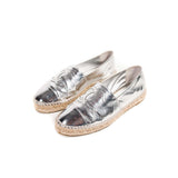 Details: Silver Metallic Leather / CC Logo at Vamps / Jute Trims / Rubber Sole