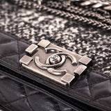 Description: Authentic Pre-Owned Chanel New Medium Enchained Leather Tweed Boy Flap Bag