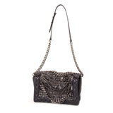 Details: Black Calfskin Leather / Black and White Tweed / Chain-Link Shoulder Strap with Leather Pad / Multiple Chains on the Front / Dual Compartment / Fabric and Leather Lining / Zipper Pocket at Inside / S-Lock Closure at Front Flap