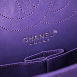 Details: Purple Quilted Leather / Silver-Tone Hardware / Chain-Link Shoulder Strap / Exterior Pocket at Back / Leather Lining / Dual Flat Pockets at Zipper Pocket at Insider Flap / Dual Flap with Button and Turn-Lock Closure