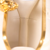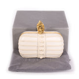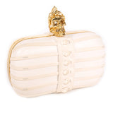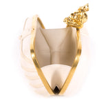 Details: Beige Lambskin Leather / Gold Tone Hardware / Gold Jeweled Skull Switch Lock With Gold Pearl Eyes / Interior Leather / Embossed Logo At Inside