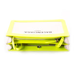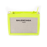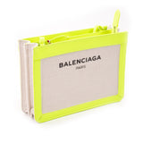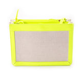 Details: Cotton-Linen Canvas Blend with Neon-Green Leather Trim / Adjustable and Detachable Shoulder Strap / Interior Canvas Lining / Dual Compartments One With Zip Closure / Slit Pocket at Interior / Magnetic Fastening at Top