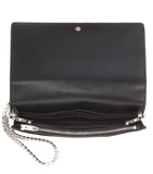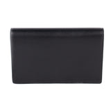 Details: Black Calfskin Leather / Silver-Tone Hardware / Detachable Chain-Link Shoulder Strap / Small Zip Pocket At Exterior Front / Dual Compartments One With Zip Closure / Three Flat Pockets At Interior / 12 Card Slots / Push Lock Closure At Front Flap