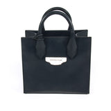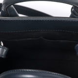 Details: Blue Navy Calf Leather Tote / Dual Top Rolled Handles / Adjustable Removable Shoulder Strap / Marble Print Logo At The Exterior Front / Squared Shape / Buckle Fastening Side Straps / Black Interior Woven Lining / Zip Pocket Inside With Dual Slit Pockets At Interior Wall
