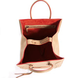 Details: Khaki Pebbled Calfskin Leather / Silver-Tone Hardware / Dual Rolled Handles / Exterior Zip Pocket At Front / Protective Studs At Base / Red Suede Lining At Interior / Single Zip Pocket At Wall / Pull Through Closure At Top