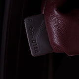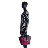 Details: Black, Fuchsia and Burgundy Calfskin Leather / Brass Hardware / Dual Rolled Handles / Small Exterior Zip Pocket at Front / Black Smooth Leather At Interior / Three Pockets at Interior, One with Zipper Closure / Zipper Closure at Top