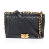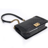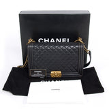 Details: Black Quilted Lambskin Leather / Gold-Tone Hardware / Gold Chain-Link And Black Leather Shoulder Strap / Black Interior Woven Lining / Single Compartment / Zip Pocket At Interior Wall And Dual Slit Pockets At Other Wall / Flap With Push Lock Closure At Front With CC Logo