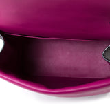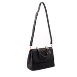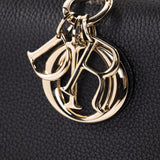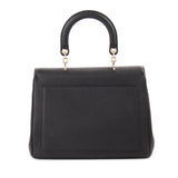 Details: Black Pebbled Calf Leather / Gold Tone Hardware / Single Rolled Handle / Detachable Adjustable Shoulder Strap / Logo Charm at Front / Purple Leather Lining / Large Compartment / Dual Slit Pocket at Interior / Slit Pocket Under the Flap / Push Lock Closure at Front Flap