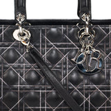 Details: Black Cannage Quilted Leather / Silver-Tone Hardware / Dual Rolled Handles / Detachable Shoulder Strap / Dior Logo Letters Charm At Front / Protective Studs At Base / Black Diorissimo Canvas Lining / Zip Pocket At Interior Wall / Zip Closure At Top