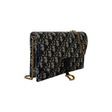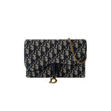 Description: Authentic New Christian Dior Saddle Wallet on Chain in Blue Dior Oblique Jacquard