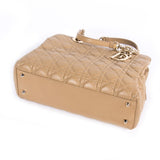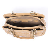 Details: Camel Cannage Quilted Leather / Gold-Tone Hardware / Dual Gold Chain Link And Leather Shoulder Strap / Tonal Stitching / Dior Logo Initials At Strap Base / Yellowish-Brown Tawny Woven Lining / Three Compartments At Interior: One Compartment With Zip Closure And Two Compartments With Magnetic Snap Closure / Three Pockets At Interior Walls: One Zip Pocket And Two Slit Pockets