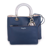 Description: Authentic Christian Dior Blue Leather And Karung Diorissimo