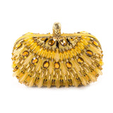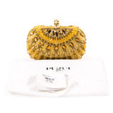 Details: Yellow Mustard Satin / Crystal and Bead Jewels Embellishments / Metallic Eagle Head at Top / Satin Lining at Interior / Push Lock Closure