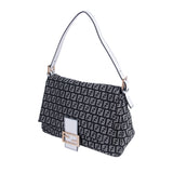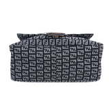 Details: Black and Grey Fendi Zucca Canvas / White Leather Trim / Gold-Tone Hardware / Logo at Front / Adjustable Shoulder Strap / Black Fabric Interior / Zipper Pocket at Inside / Magnetic Snap at Front Flap