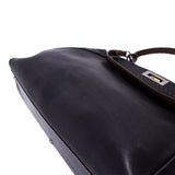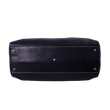 Details: Black Leather / Gold and Silver-Tone Hardware / Single Rolled Handle / Detachable Shoulder Strap / Metallic Brown Leather Trim / Dual Interior Compartments / Black Suede Lining / Zipper Pocket at Inside / Dual Turn-Lock Closures at Top