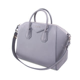 Details: Grey Goatskin Leather / Silver-Tone Hardware / Dual Rolled Handles / Detachable Shoulder Strap / Logo at Front / Black Fabric Interior Lining / Two Flat Pockets and One Zipper Pocket at Inside / Zipper Closure at Top