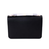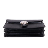 Details: Black Grained Leather / Gold-Tone Hardware / Chain-Link Shoulder Strap / Logo at Front / Fabric Interior Lining / Dual Compartments / Zipper Pocket at Inside / Flap Closure