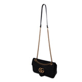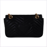 Details: Black Quilted Chevron Leather / Gold-Tone Hardware / Chain-Link and Leather Pad Shoulder Strap / Double G Logo at Front / Micro-Fiber Suede Interior Lining / Zipper Pocket at Inside / Push Button Flap Closure at Top