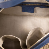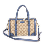 Details: Brown And Beige Coated Canvas / Gold Tone Hardware / Dual Rolled And Adjustable Handles / Detachable And Adjustable Shoulder Strap / Blue Leather Accent / Single Compartment / Three Pockets At Interior Walls, One With Zip Closure / Beige Fabric Lining At Interior / Two-Way Zip Closure At Top