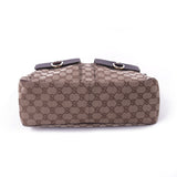 Details: Brown and Tan GG Canvas / Brass Hardware / Single Rolled Handle / Brown Leather Trim / Dual Pocket on Exterior Front / Brown Canvas Interior Lining / Dual Pockets at Inside one with Zipper / Zip Closure at Top