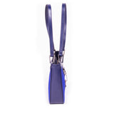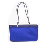 Details: Navy Blue Leather And Satin Shoulder Bag / Silver Tone Hardware / Dual Flat Shoulder Stap / Clasp Embellishment At Front / Blue Interior Lining / Interior Zip Pocket / Zip Closure On Top