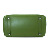 Details: Pelouse Swift Leather / Palladium Hardware / Dual Rolled Handles / Green Stitching / Black Leather Trim / Protective Feet at Base / Green Leather Interior Lining / Zipper and Flat Pocket at Inside / Pull-Through Closure at Front Flap with Turn-Lock