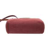 Details: Dual Interchangeable Canvas in Burgundy and Beige / Burgundy Leather Trim / Dual Rolled Handles / Detachable Shoulder Strap / Single Compartment with Flat Pocket / Pull-Through Closure at Front Flap
