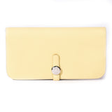 Details: Jaune Poussin Calfskin Togo Leather / Palladium Hardware / Interior Leather / Eight Card Slot / Dual Cash Compartments / Zipper Pocket At Back / Pull Through Closure At Front Face