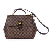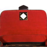 Details: Brown And Tan Damier Ebene Coated Canvas / Brass Hardware / Vachetta Brown leather Trim / Removable Shoulder Strap / Flat Top Handle / Red Alcantara Interior Lining / Dual Slit Pockets At Interior Wall / Gold Front Twist Turn-Lock Closure At Front Flap