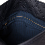 Details: Dark Navy Blue Monogram Empreinte Embossed Leather / Gold-Tone Hardware / Single Rolled Top Handle with Braided Leather Accent / Protective Studs at Base / Grey and Black Canvas at Interior / 6 Slot Pockets and One Zip Pocket at Inside / Open Top