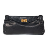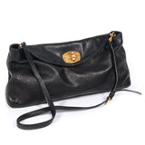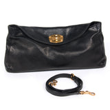 Details: Black Grained Leather / Gold Tone Hardware / Adjustable Removable Shoulder Strap / Satin Interior Lining / One Large Compartment With Zip Closure Pocket At Interior Wall / Flap Top Closure With Turn Lock