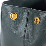 Details: Green Saffiano Leather / Gold Tone Hardware / Dual Rolled Top Handles / Logo Placard At Front / Black Interior Woven Lining / Dual Pockets At Wall / Single Slit Pocket / Zip Pocket At Interior Wall / Magnetic Snap Closure At Top