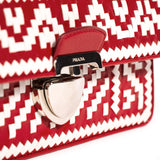 Description: Authentic Prada Woven Madras Pattern Shoulder Bag Bianco+Fuoco